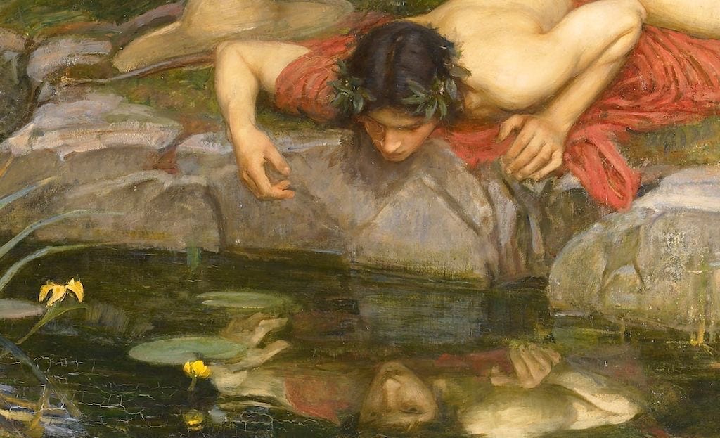 ف العاشقين هاؤلا عندما ينظرون للغدير وتنعكس ملامحهم على الغدير، ف يتسابق كُلٍّ منهم لشرب هذا الغدير، ليس لـ يروي نفسه بالماء، لا . بل لـ يروي نفسه من ملامح صاحبه. وصف عجيب " يَشرب ملامح صاحبه "